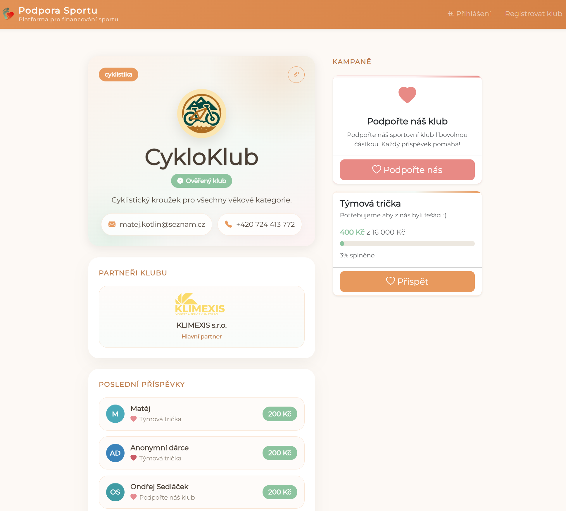 Klub dostane vlastní stránku, kde lidé uvidí kdo jste, proč a na co sháníte finance a jak mohou přispět.